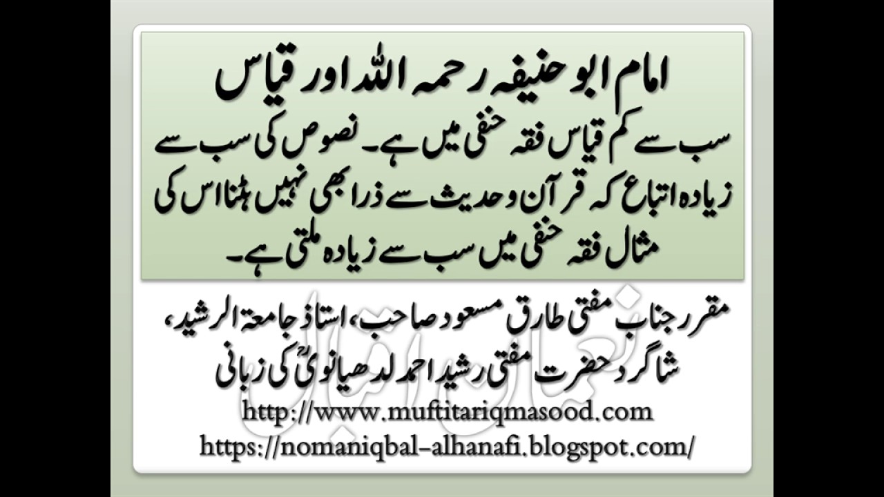 Information informativebeautiful urdu naat#youtube#video #lecture#urdu lecture#tutor#academy#englishspeeches#english grammar#parts of speech#tenses #poems#. Ijma aur qiyas kya hai , ijma kisy khty hin ? يبدأ استقبال الفترة المسائية للاختبار التحصيلي من بعد صلاة المغرب ويقفل الساعة 7:45 مساءً وبداية الاختبار الساعة 8 مساءً. Complete and clear explanation about the difference between ijma and qiyas by knowledge. Qiyas — qiyâs religion religions abrahamiques : Qiyas is one of two way to face recent problems that is not explicitly explained in quran nor hadits. Qiyas — in sunni islamic jurisprudence,the qiyas (arabic قياس) is the process of. This page provides all possible translations of the word qiyas in the urdu language. In islamic jurisprudence, qiyās (arabic: 30 thoughts on 73 sects prophecy (in urdu + roman urdu). What's the urdu translation of qiyas? Those issues which have not been dealt with directly by the holy quran and. Qiyas qiyas or analogical deduction is the fourth source of shariah that literally means to measure accord or equality.